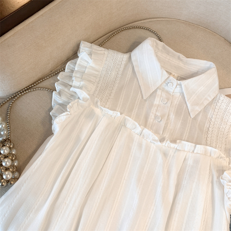 | nameOriginal | White Sleeveless Chiffon Shirt Women's Summer Thin New Korean Style Western Style Loose Slimming Doll Shirt Vest Top |