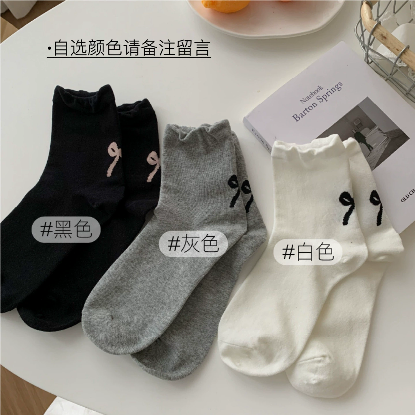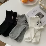 White socks women's mid-calf socks spring and summer pure cotton ins trendy thin section Japanese girl bow summer stockings