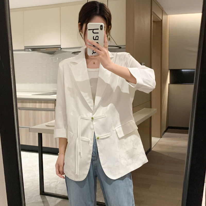 | nameOriginal | White Suit Jacket Women's Summer Thin 2024 New Arrival Small Seven-point Sleeve Short Suit Buckle Top |
