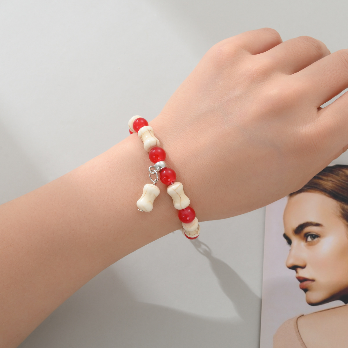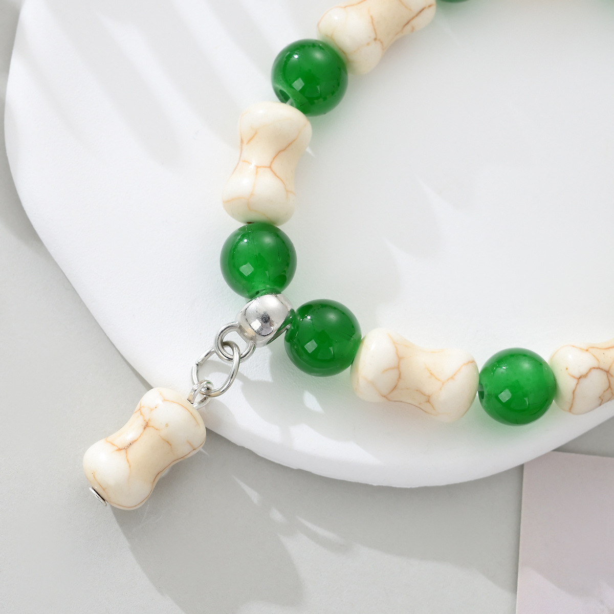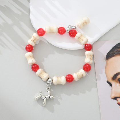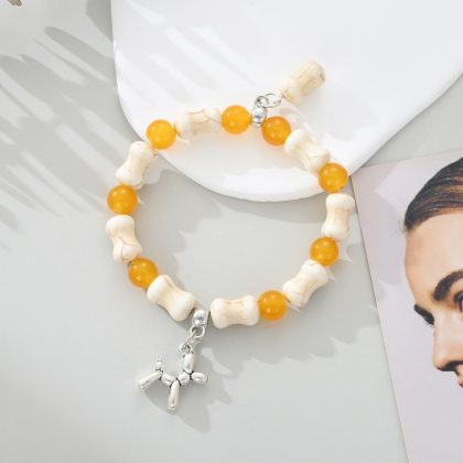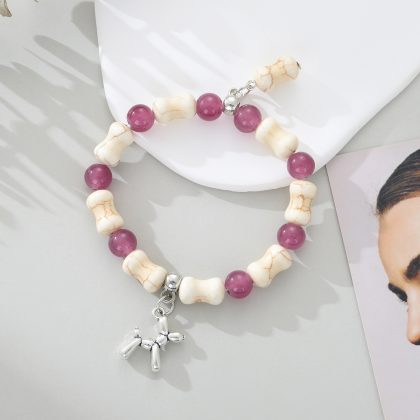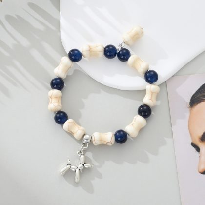 | nameOriginal | White Turquoise Bone Glazed Beads Bracelet Fashion Creative DIY Puppy Pendant Bracelet Cross Border Elastic Beaded Bracelet |