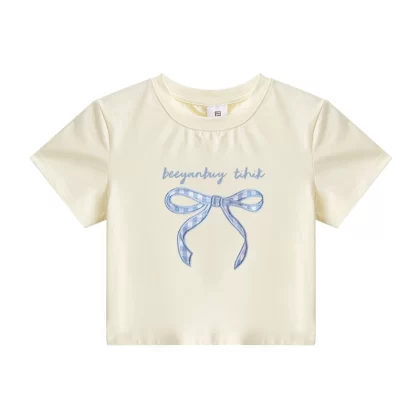 | nameOriginal | White Women's Slim Fit Bow Round Neck Short Sleeve T-Shirt |