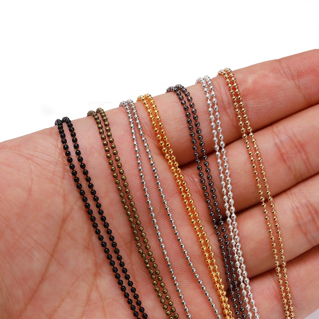 Wholesale 1.2mm multi-size bead chain kc gold imitation gold gun black bronze necklace bracelet metal bead chain copper