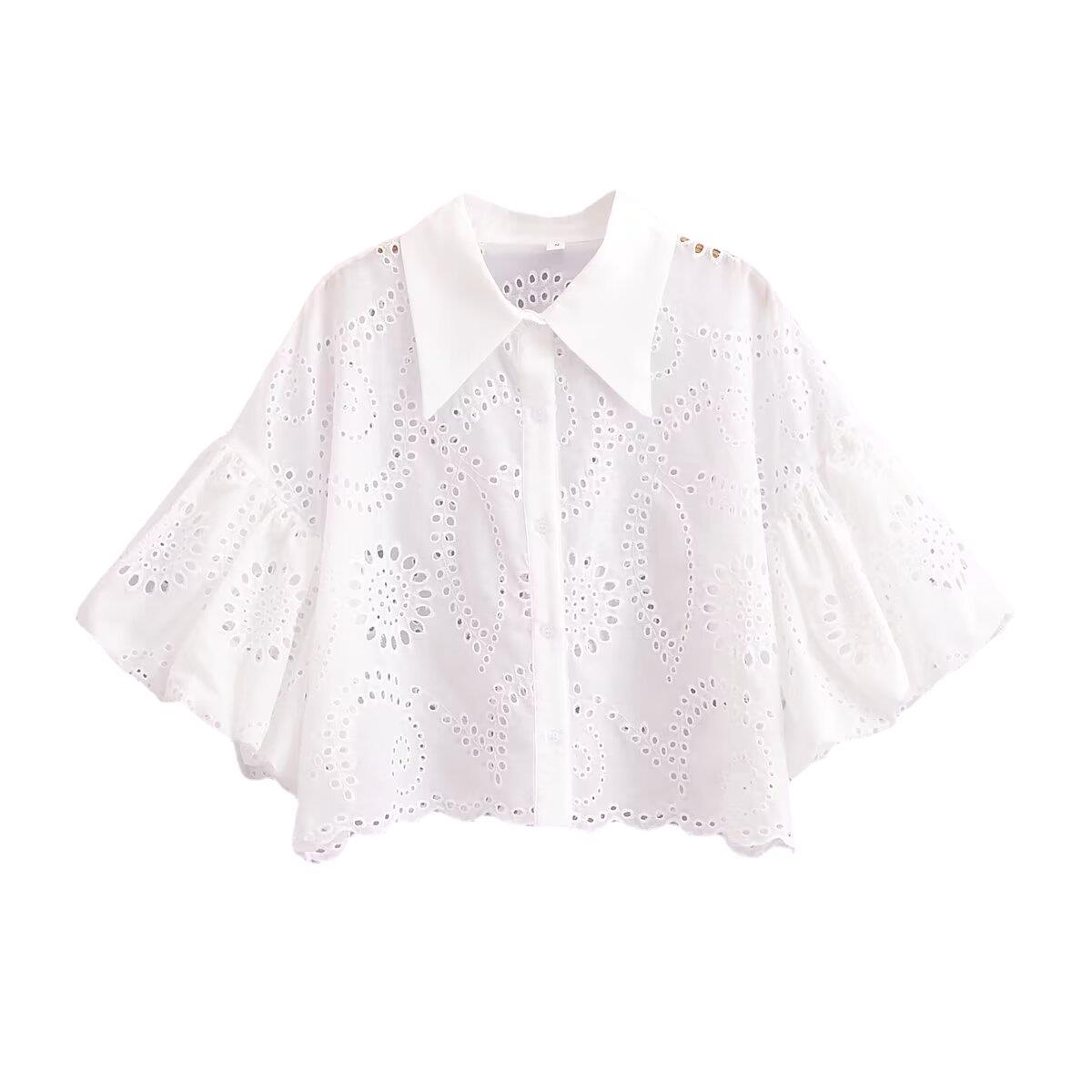 | nameOriginal | Wholesale 2024 spring new European and American style women's white embroidery short bubble sleeve shirt |