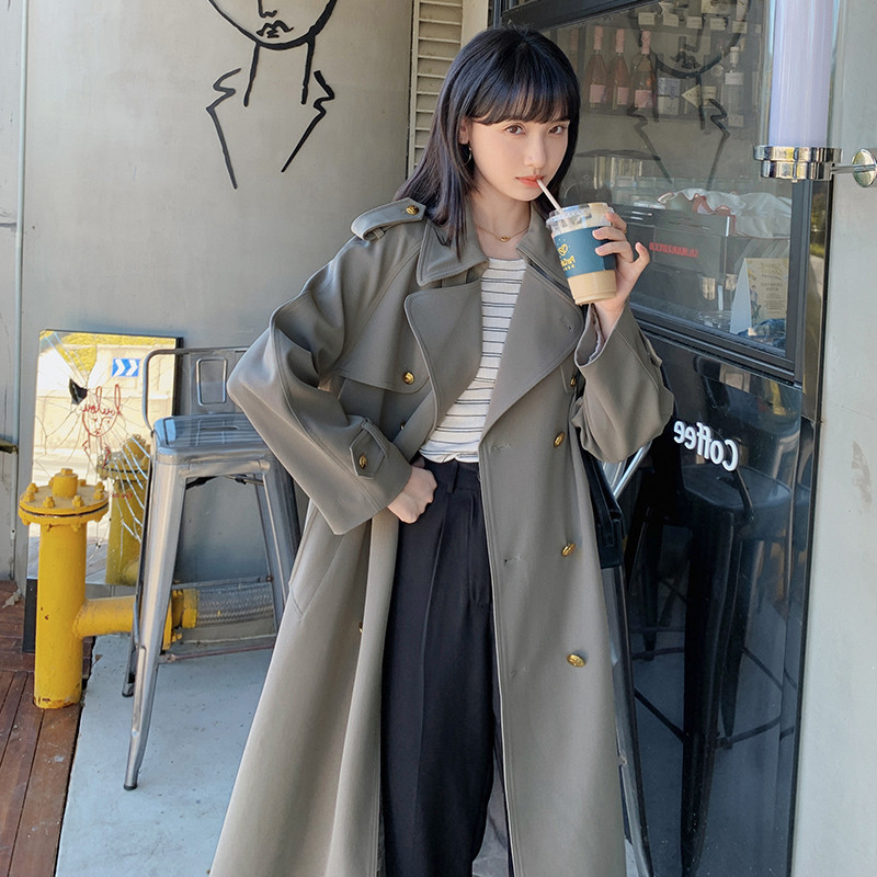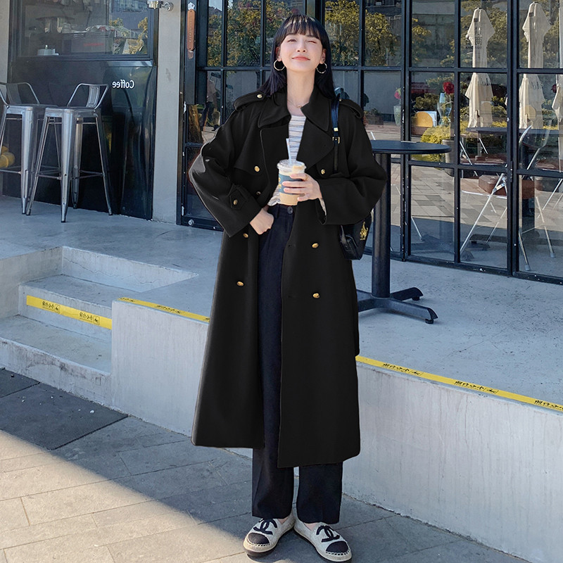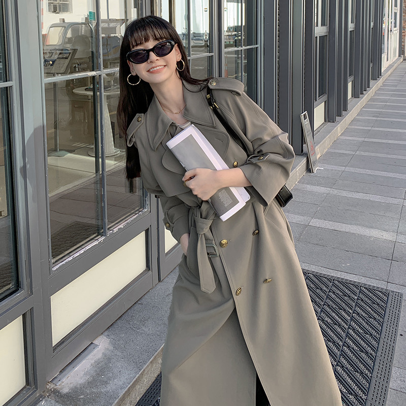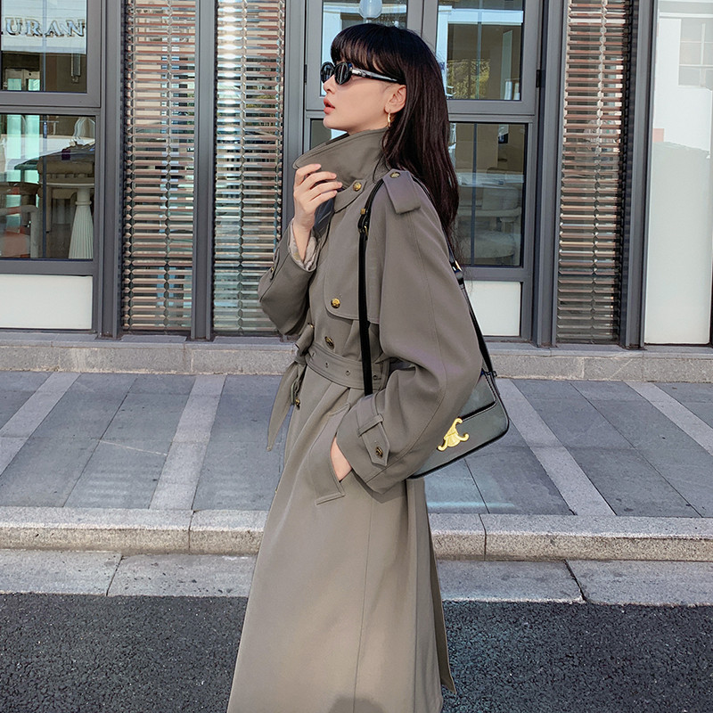 Wholesale Korean style Samei metal buckle design waist lace-up high-grade versatile temperament simple niche trench coat for women