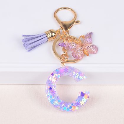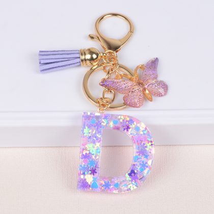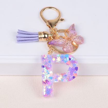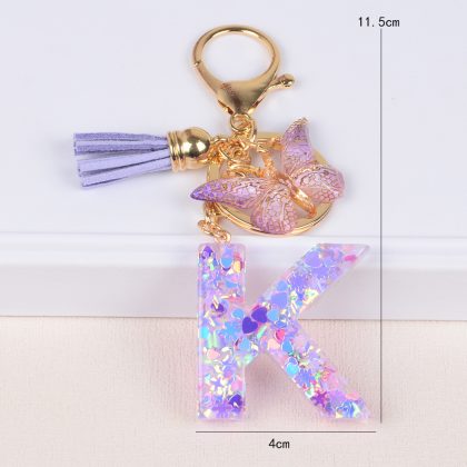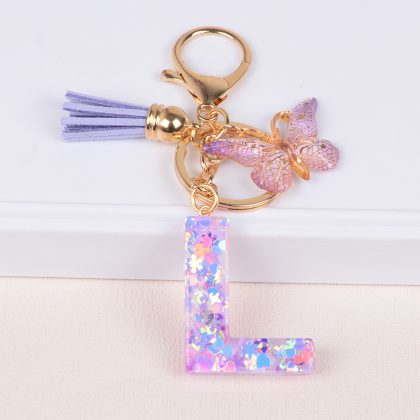 Wholesale snowflake love sequins crystal drop glue English letter keychain keychain car pendant pendant
