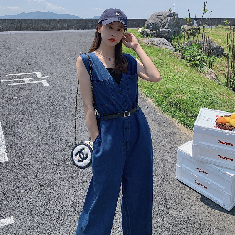 | nameOriginal | Wholesale summer new fashion casual stitching pocket sleeveless loose Denim wide leg jumpsuit two-piece women |