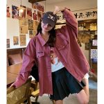 | nameOriginal | Wholesale sweet cool retro small lapel loose profile single-breasted chic white purple pink labeling Denim coat for women |