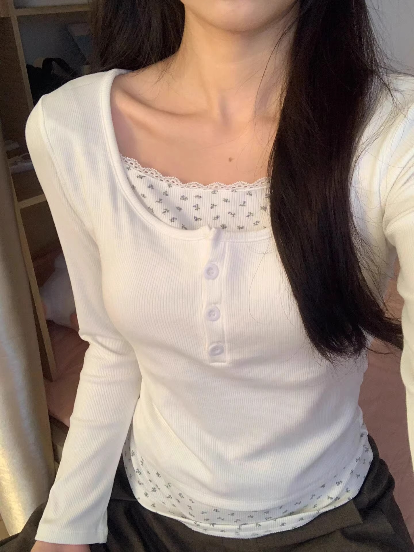 | nameOriginal | Wholesale White Floral Long Sleeve Design Sense Niche T-shirt Women's Spring Small Slim Base Shirt with Chest Pad |