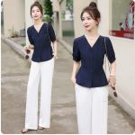 | nameOriginal | Wide Leg Pants Set Women's 2024 New Summer Professional Temperament Socialite Niche Design Sense Short Sleeve Pants Two-piece Set |