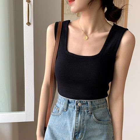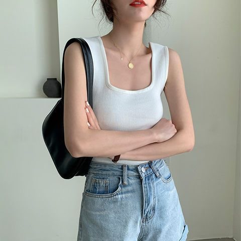 Wide Shoulder Strap Square Collar Camisole Women's Summer Top Slim-fit Inner Square Collar High Waist Slimming Shirt