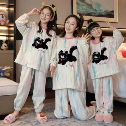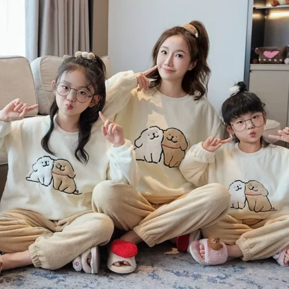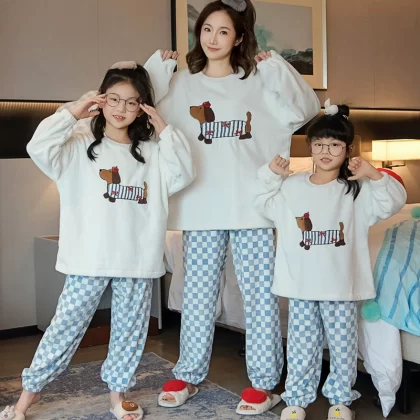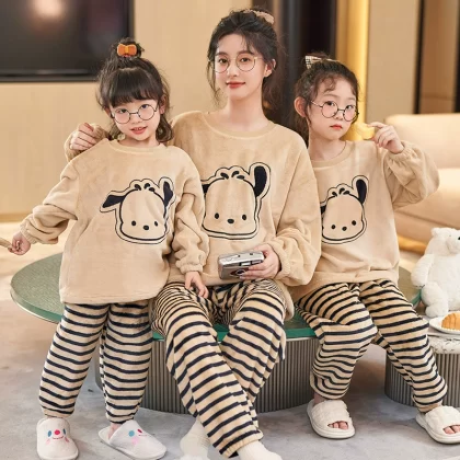 nameOriginal | Winter cartoon parent-child mother and daughter coral velvet warm pajamas |