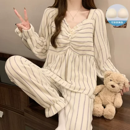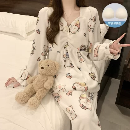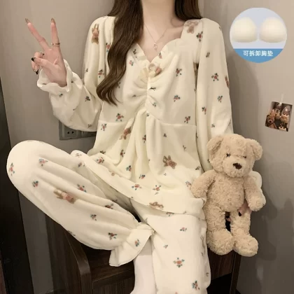 | nameOriginal | Winter coral velvet pajamas for women, thickened and velvet to keep warm, autumn and winter sweet red flannel winter home clothes |
