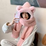 | nameOriginal | Winter new cashmere solid color plush hat women's cute cartoon scarf gloves one-piece warm thickened three-piece set |