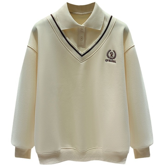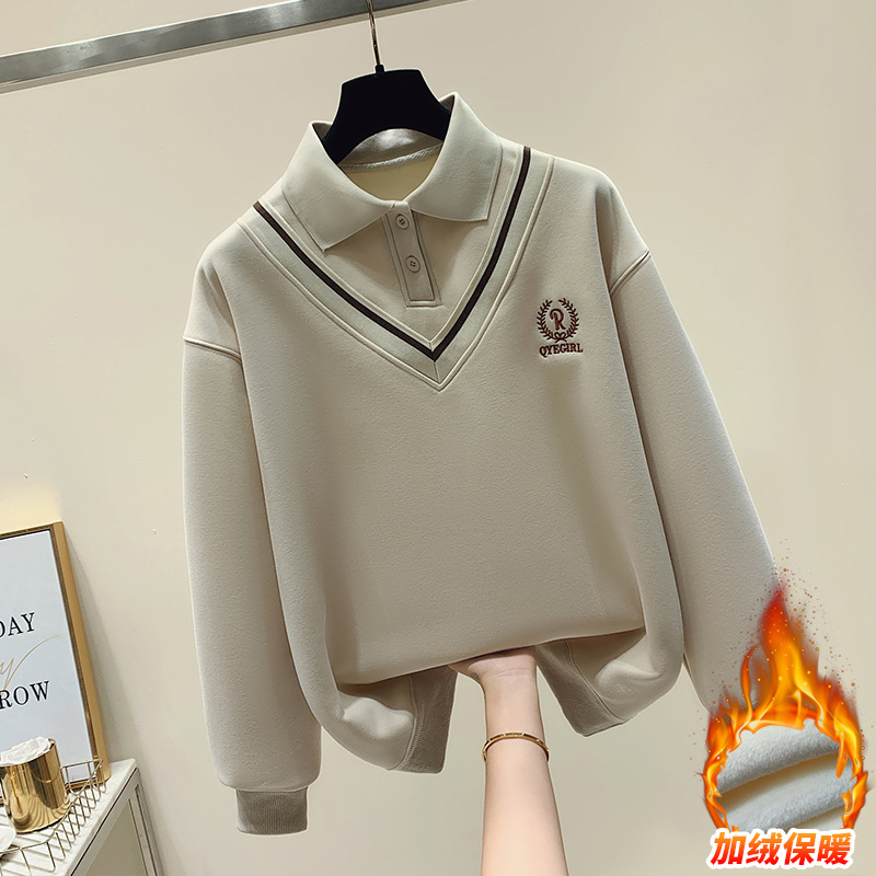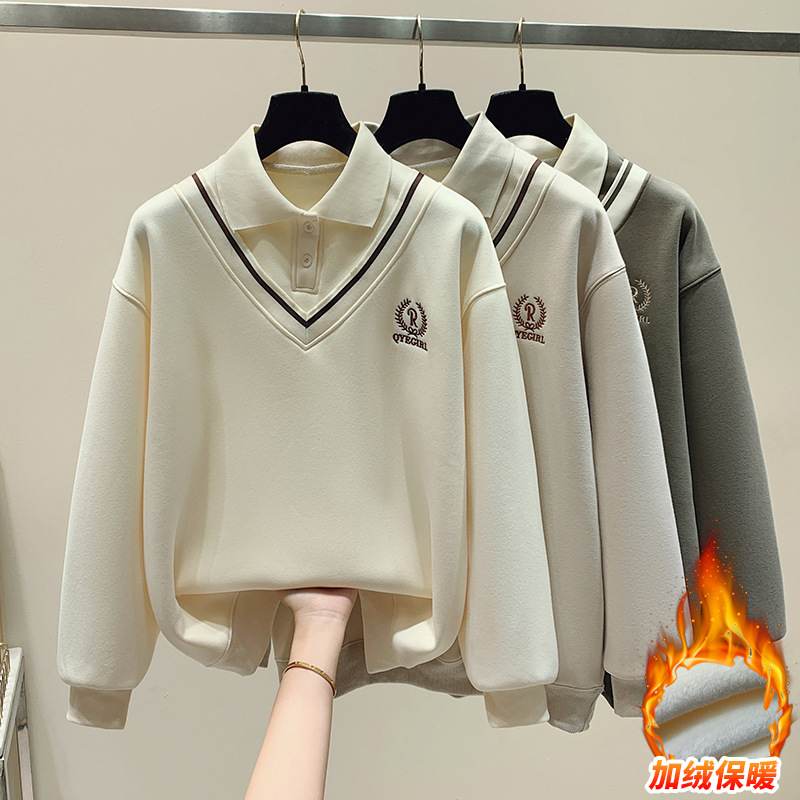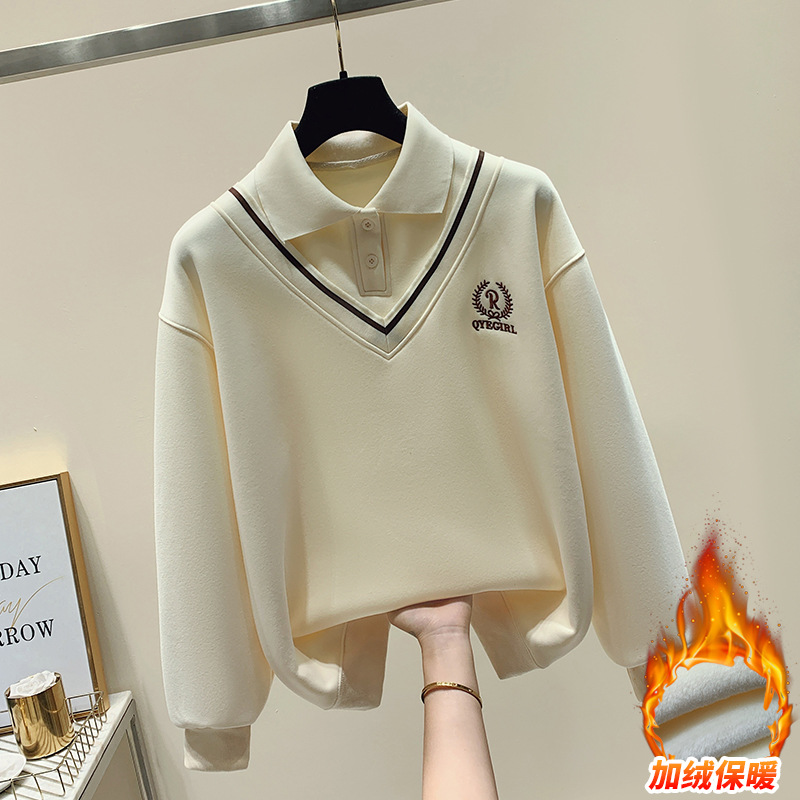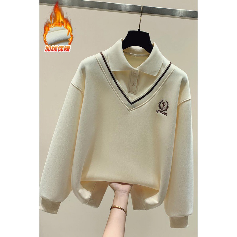 Winter new fleece-lined thickened college style fake two-piece pullover long sleeve stitching fried street loose sweet cool sweater for women