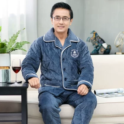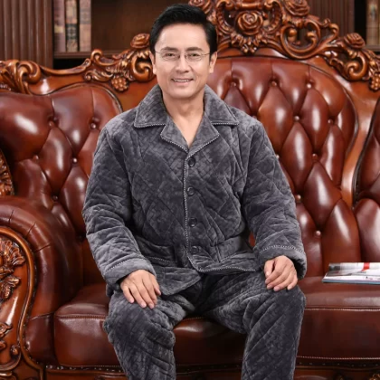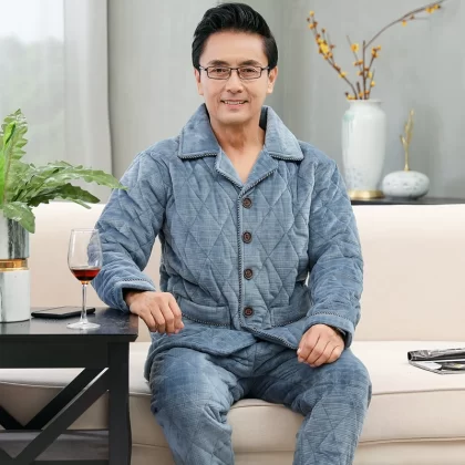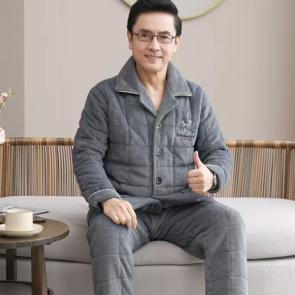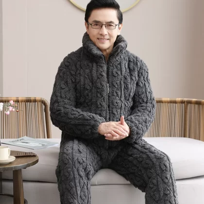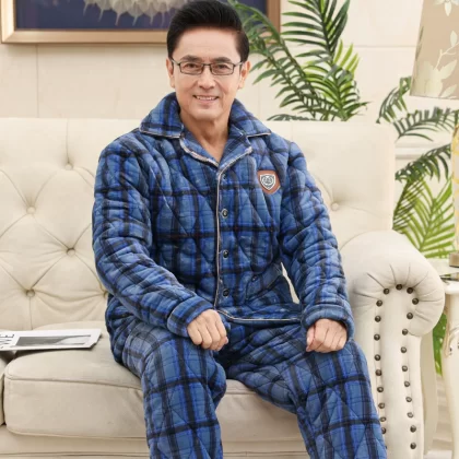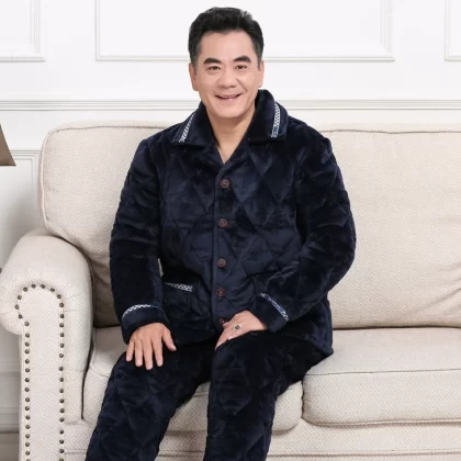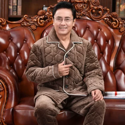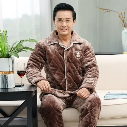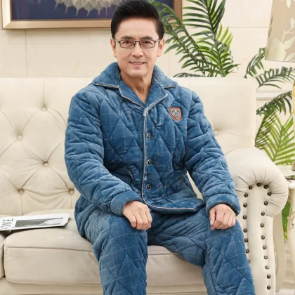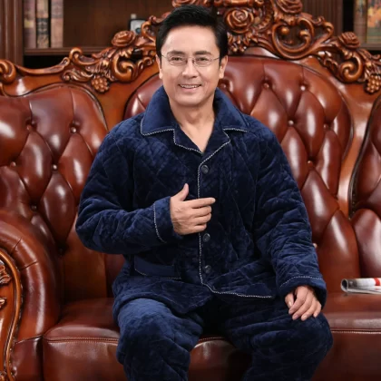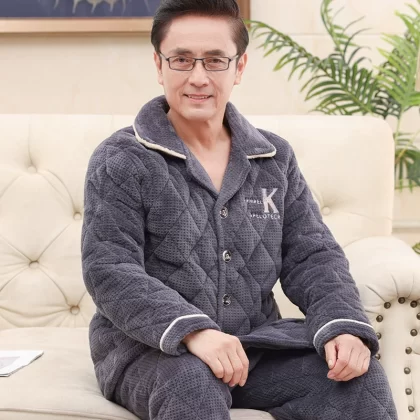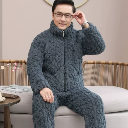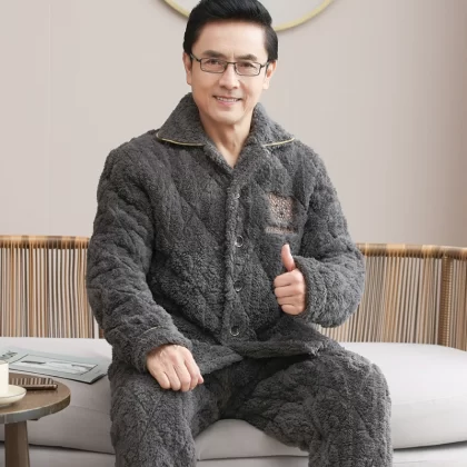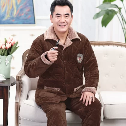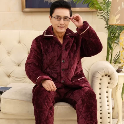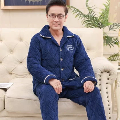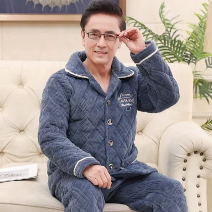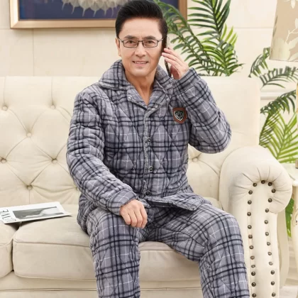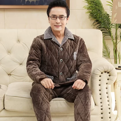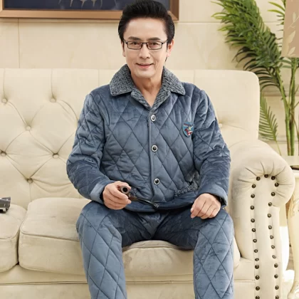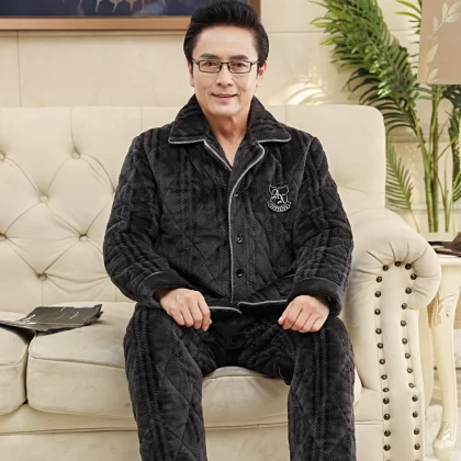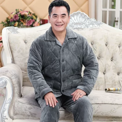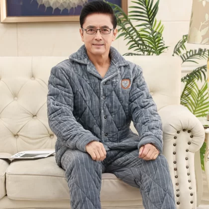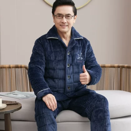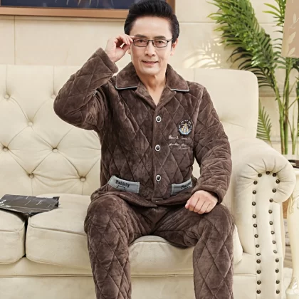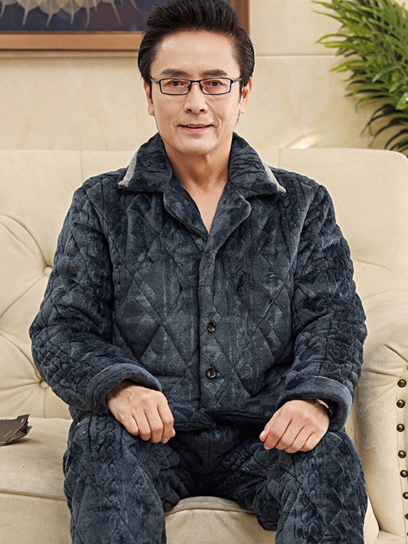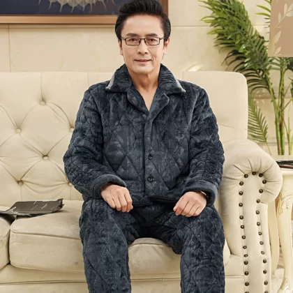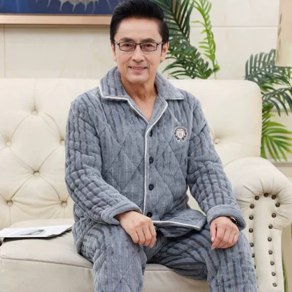 | nameOriginal | Winter pajamas for middle-aged and elderly men, coral velvet quilted three-layer thickened plus velvet warm dad home clothes set |