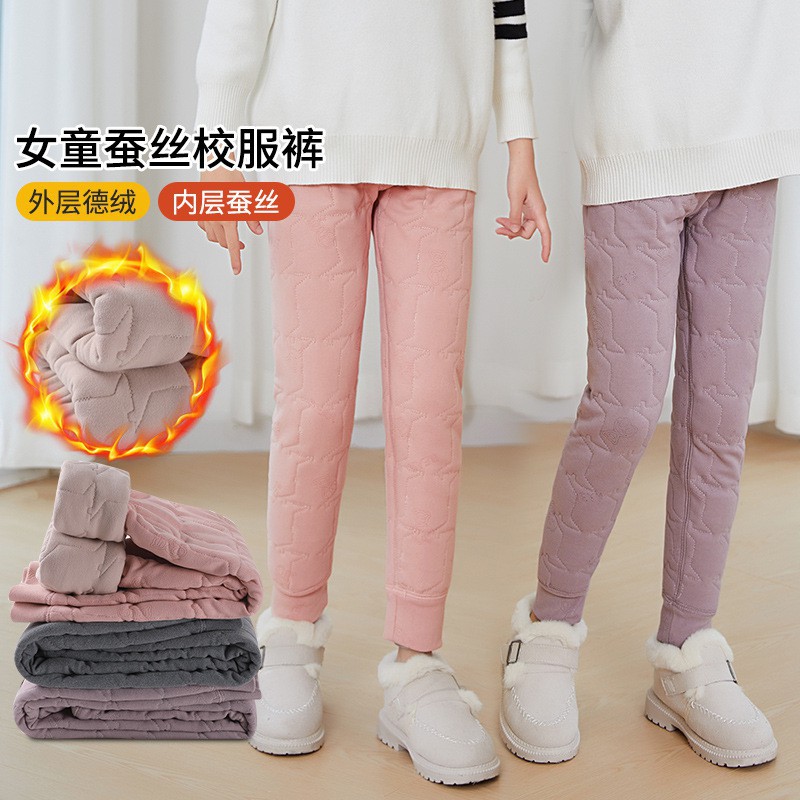 | nameOriginal | Winter Silk Cotton Middle and Large Children's School Uniform Pants Girls' Irregular Warm Pants Children's Velvet-Lined Thickened Leggings |