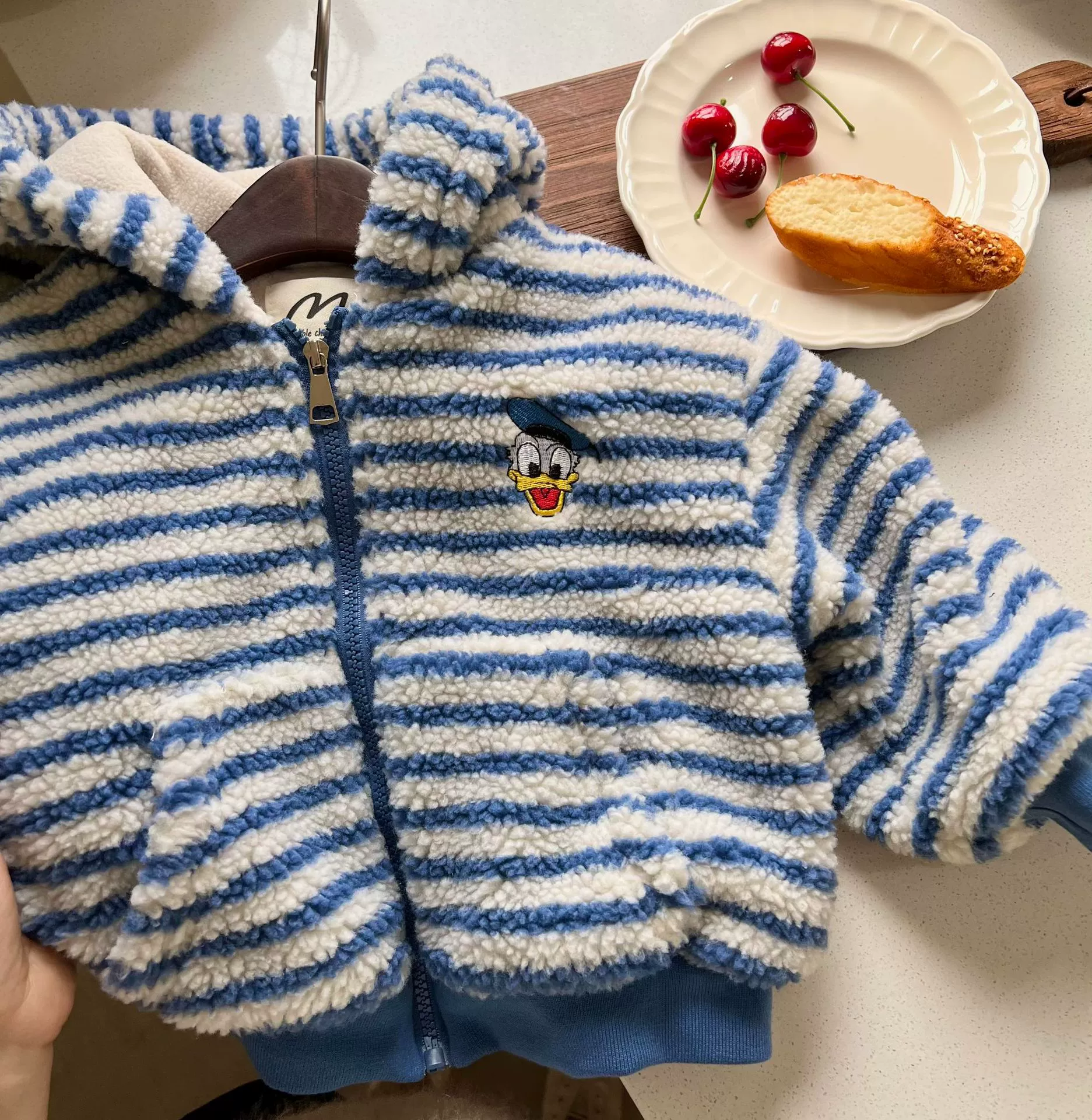| nameOriginal | Winter striped embroidered lamb wool jacket for boys and girls |
