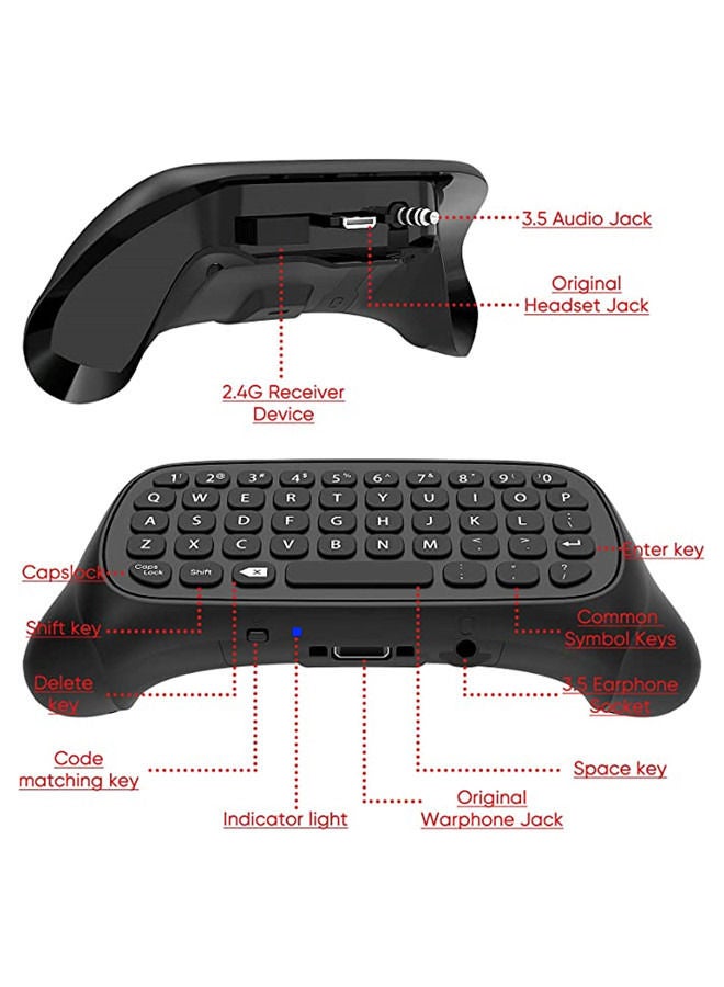 Controller Keyboard for Xbox Series X/ S/ for Xbox One/ One S, Wireless Bluetooth Gaming Chatpad Keypad with USB Receiver, Built-in Speaker & 3.5mm Audio Jack for Xbox Series X/ S/ One/ One S, Black
