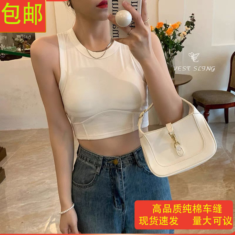 nameOriginal | With Chest Pad All-Match Pure Desire Small Sling Female Hot Girl Sexy Inner Wearing Outer Wearing Design Sense Niche Short Bottoming Top |