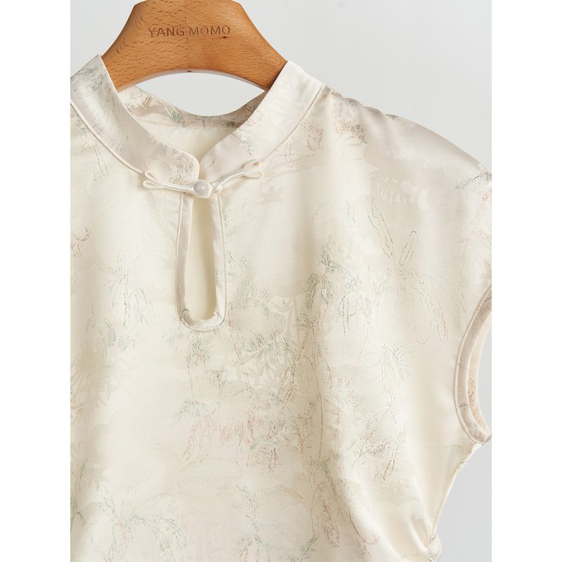 With the new Chinese style Jacquard sleeveless cheongsam shirt skirt suit 2024 new women's summer with one