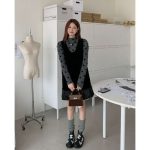 | nameOriginal | Wofanyi real shot! French flocking polka dot brushed thickened T-shirt + small U-neck stitching velvet vest skirt |