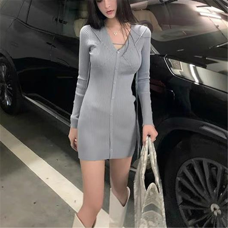 | nameOriginal | Women's 2023 New Style Pure Sexy V-neck Knitted Dress Women's Niche Design Autumn and Winter Base Hip Skirt |