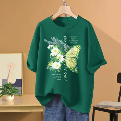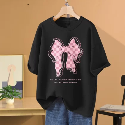 Women's 240 catties short-sleeved ins clothing covers fat sister's belly to make her look slimmer