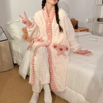 | nameOriginal | Women's autumn and winter thickened flannel long pajamas |