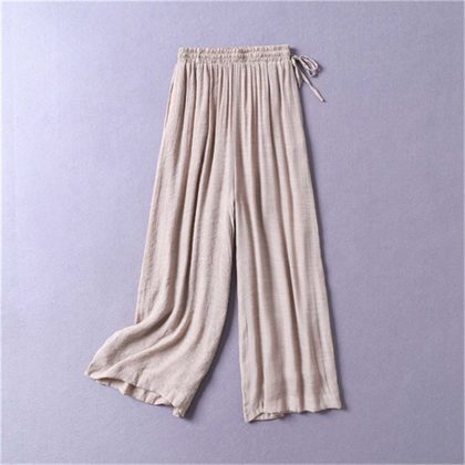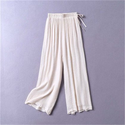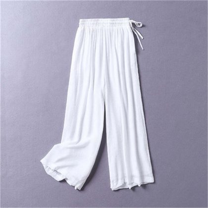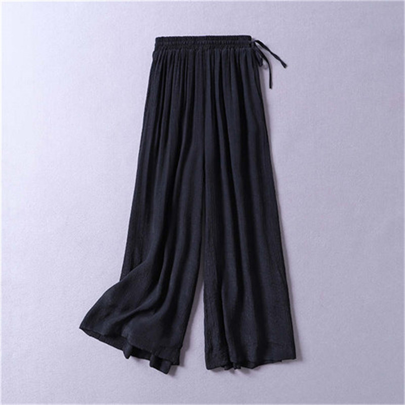المرأة بوذا يضحك حافة زن الشاي النمط الصيني الشاي الملابس أعلى السراويل النسائية اليوغا تايجي السراويل فضفاضة واسعة الساق سراويل قطنية الحرير