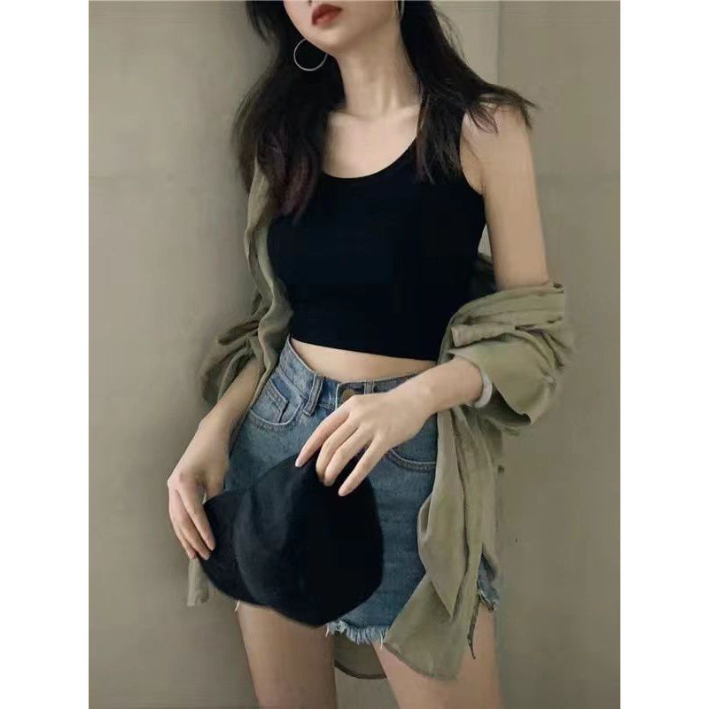 Women's Camisole Vest with Chest Pad for Summer New Arrival Outfit All-Match Spice Girl Bottoming Short Vest Women's Clothes