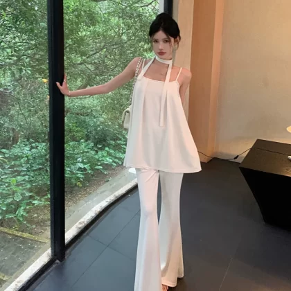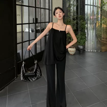 | nameOriginal | Women's chic outer wear casual two-piece suspender set with slight bootcut |