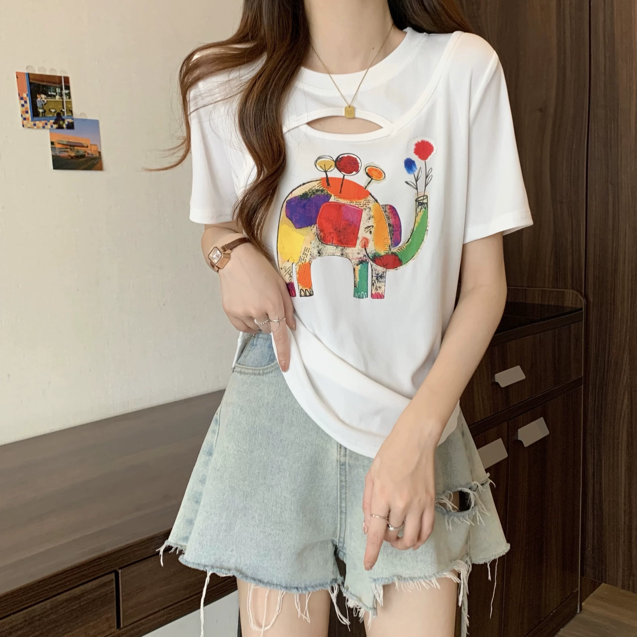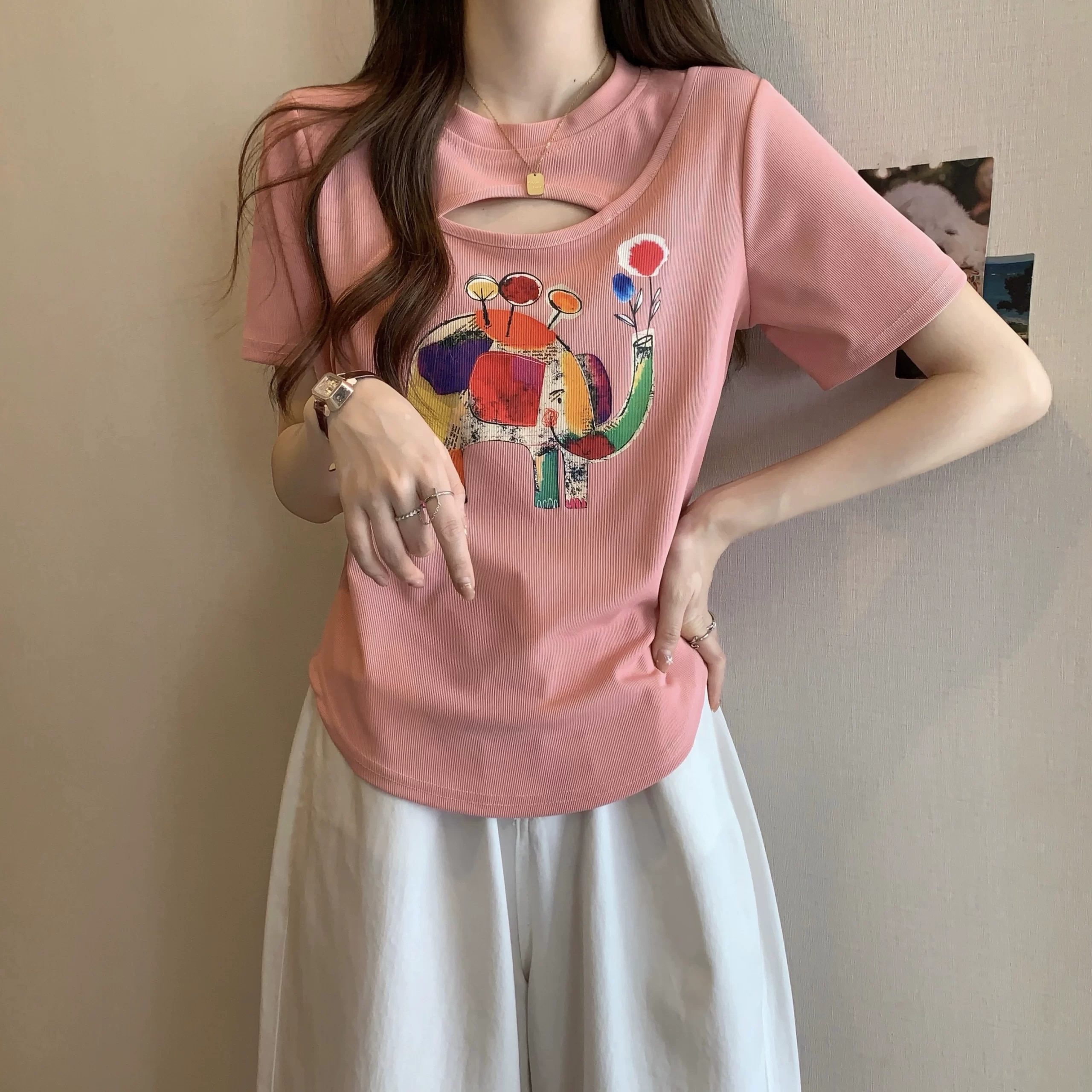 | nameOriginal | Women's clothing niche fat mm slimming short sleeves that cover the belly and look slimming |