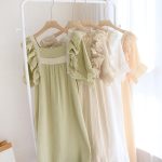 | nameOriginal | Women's cotton nightdress spring/autumn and summer new ruffle sleeve court style double-layer solid color cotton four-color short sleeve nightdress |