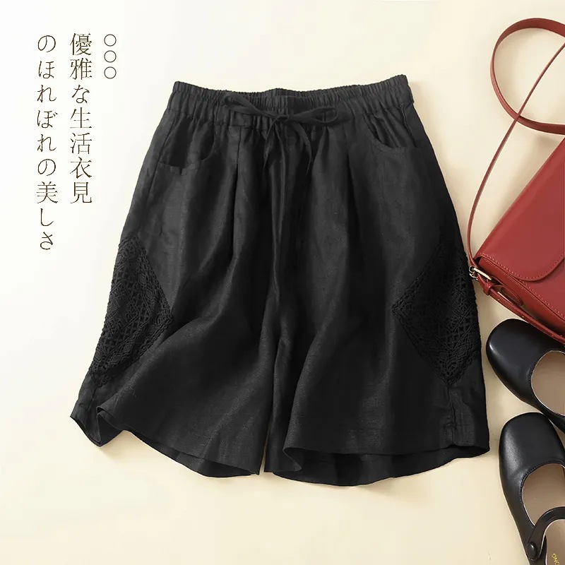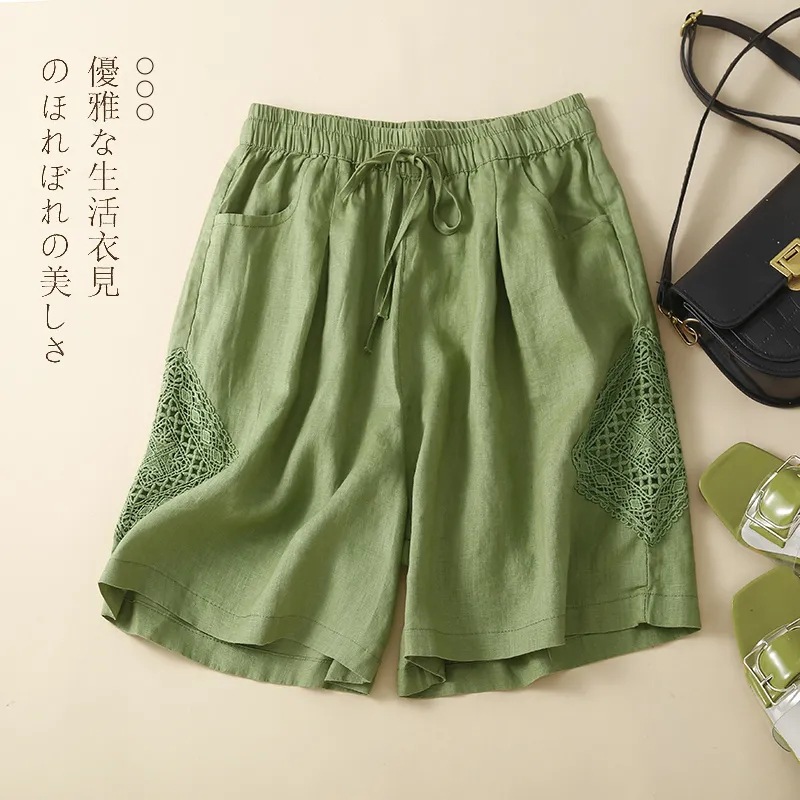 | nameOriginal | Women's cotton shorts summer retro hollow crocheted cotton linen pants artistic lace casual pants slimming loose straight pants |