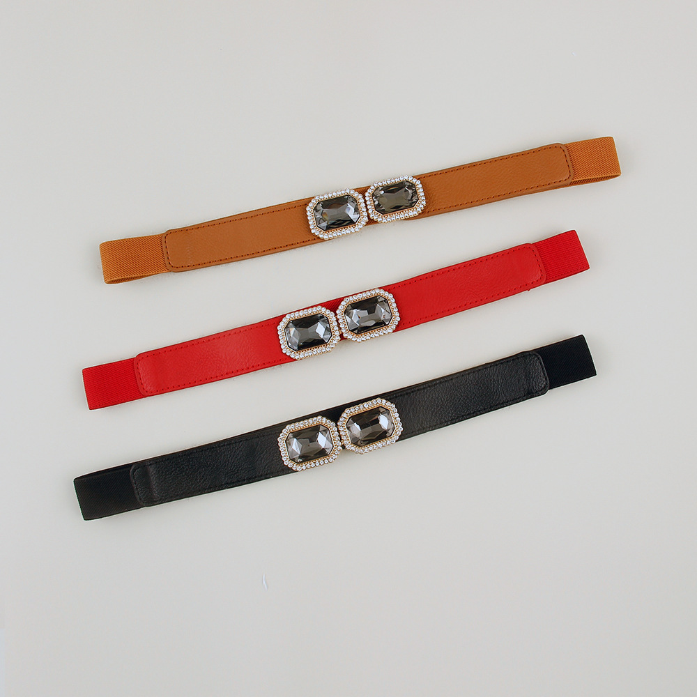 | nameOriginal | Women's elastic thin belt elastic black U-shaped buckle bronze simple waist seal fashion all-match decoration dress |