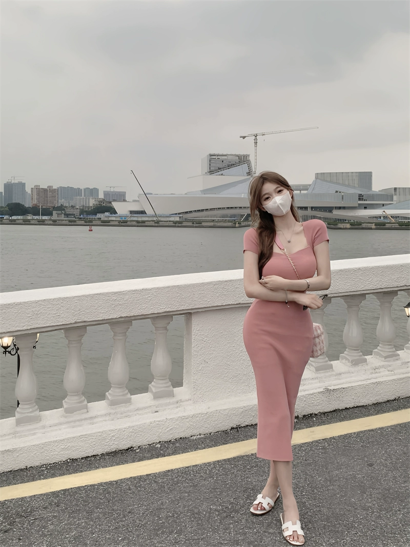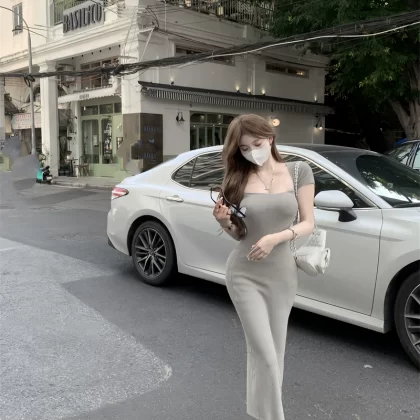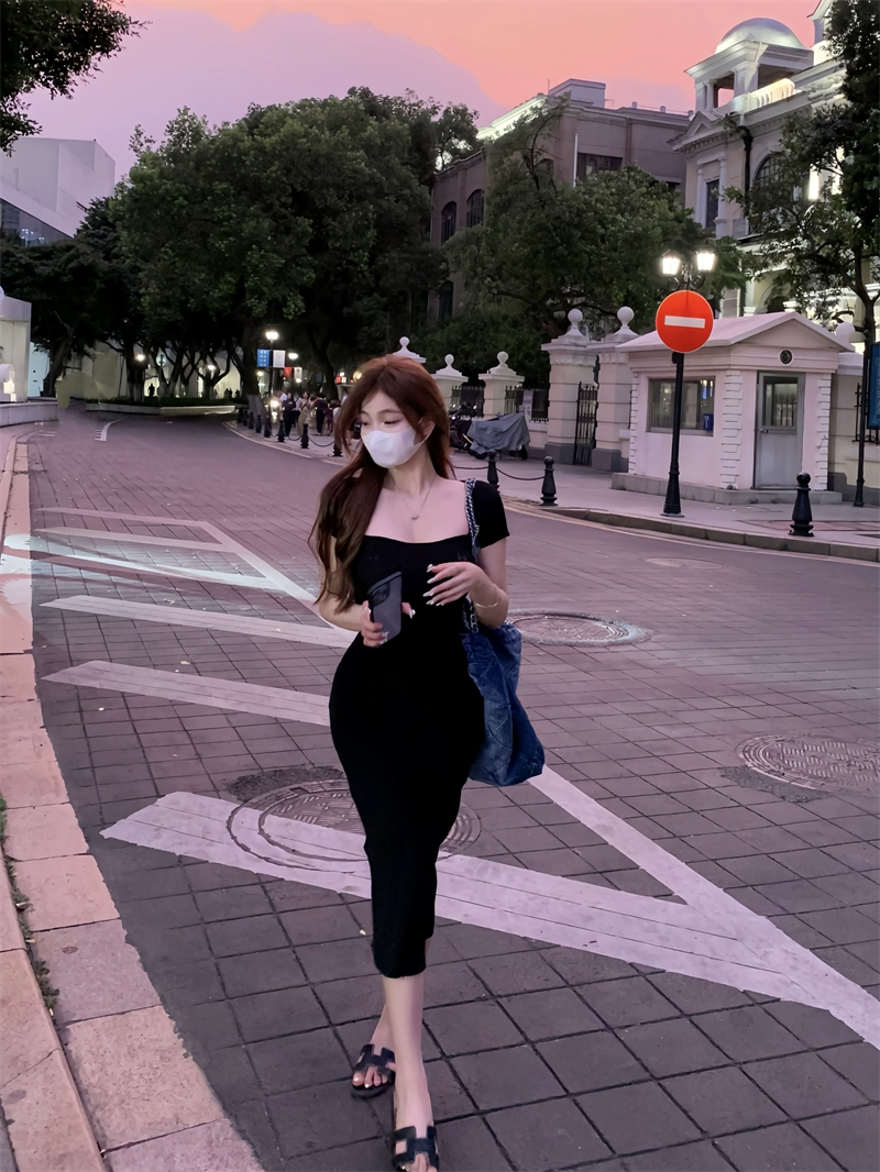 | nameOriginal | Women's fitted square neck summer hip skirt with slits and short sleeves |