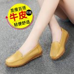 Women's Flat Shoes Genuine Leather Soft Bottom Breathable Mother Shoes Women's Single Shoes Bean Shoes plus size Beef Sole Casual Maternity Shoes