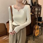 | nameOriginal | Women's French-style off-the-collarbone sweater autumn slim-fit slimming solid color knitted bottoming shirt with v-neck sweater |