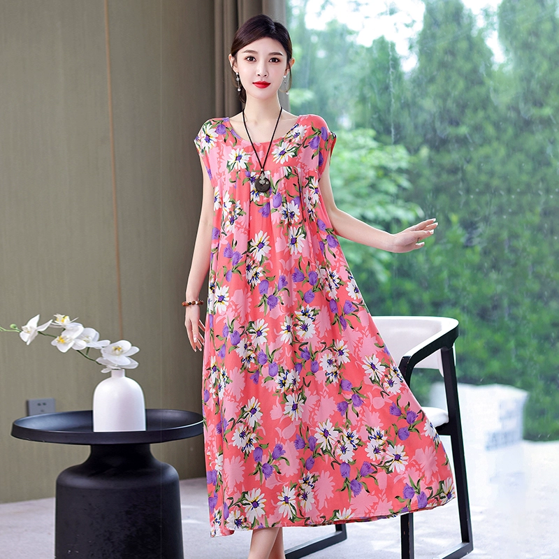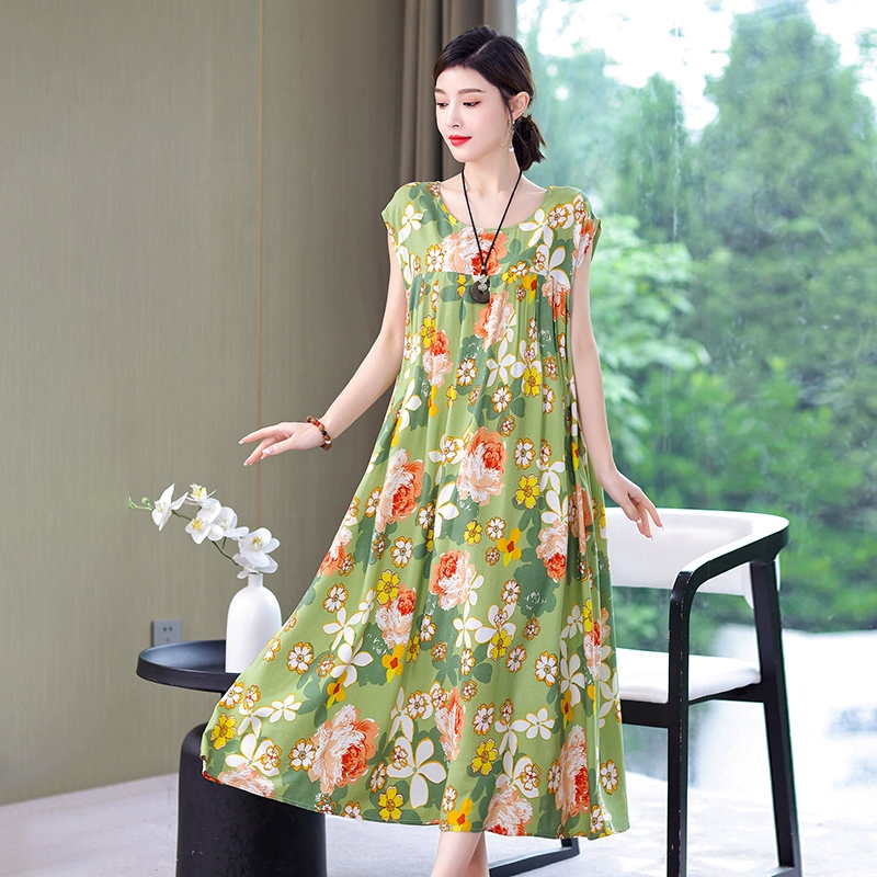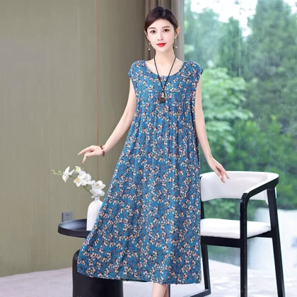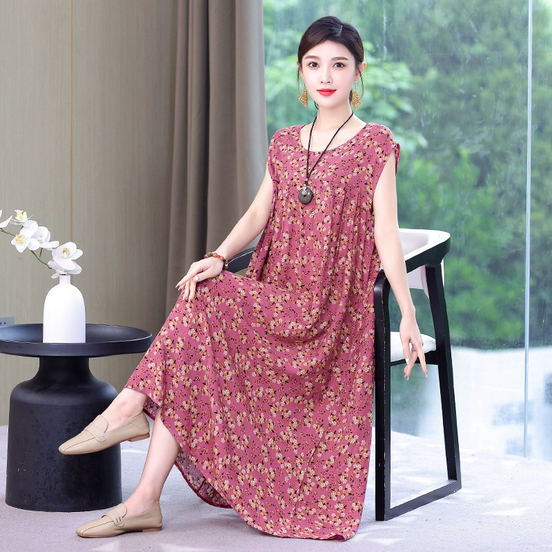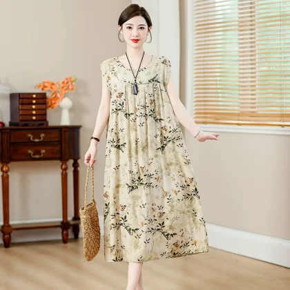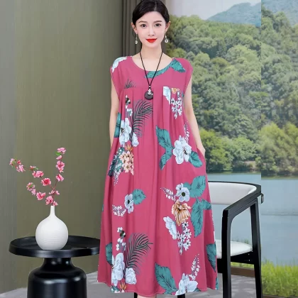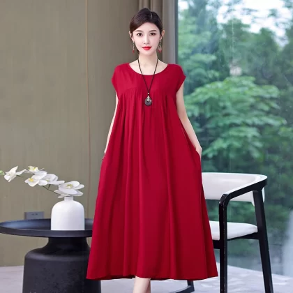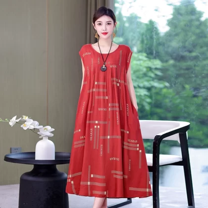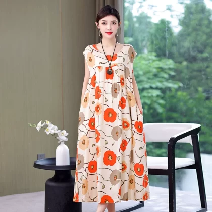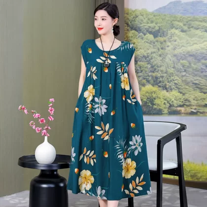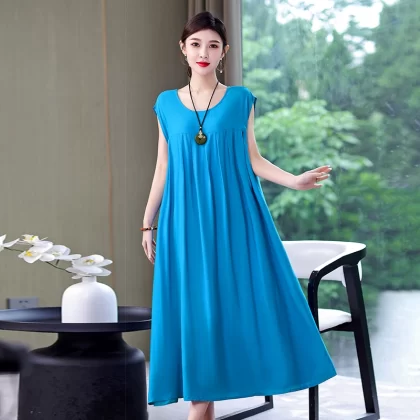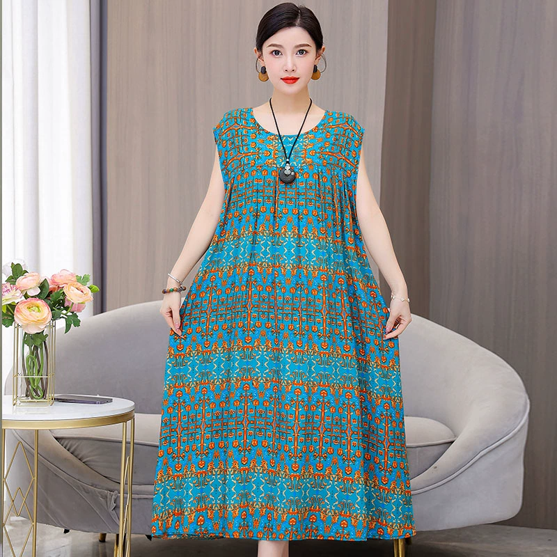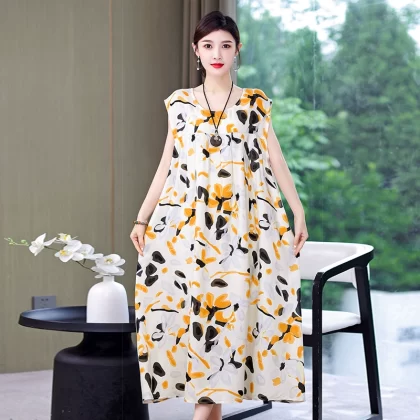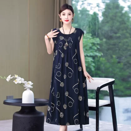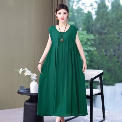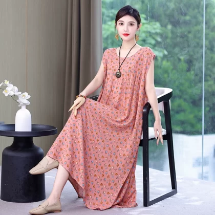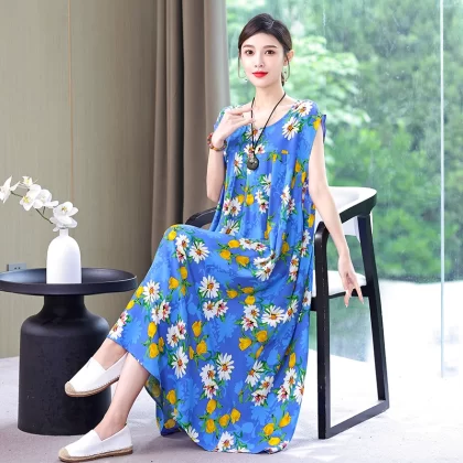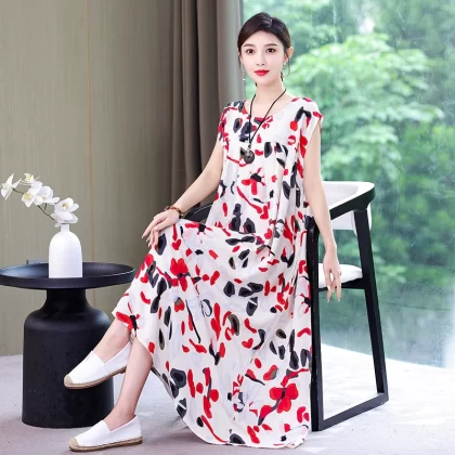 فستان نسائي عالي الجودة من القطن والحرير مقاس كبير