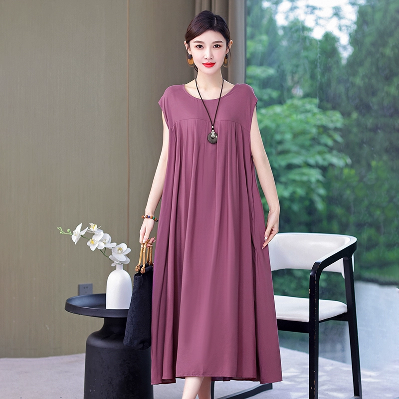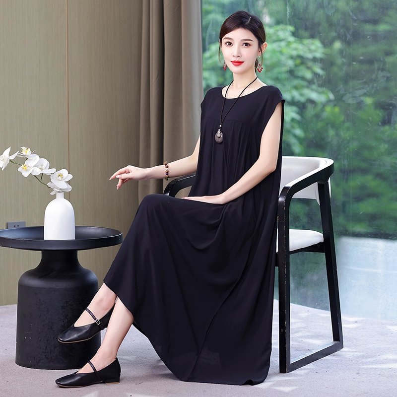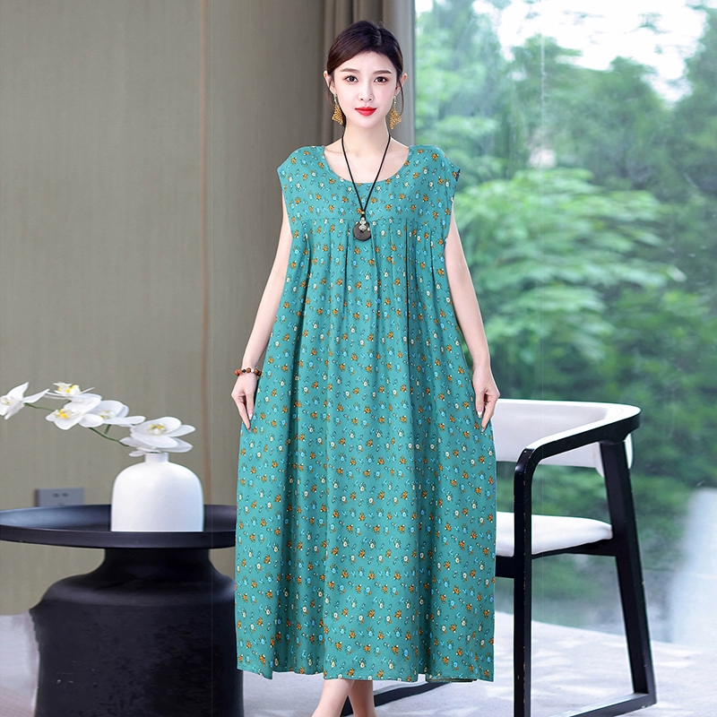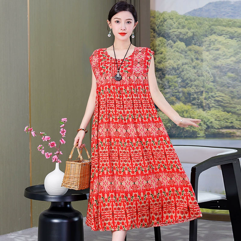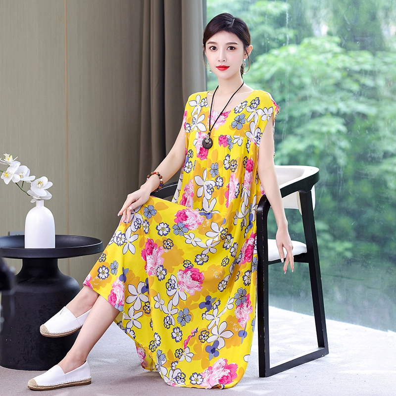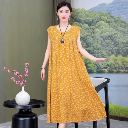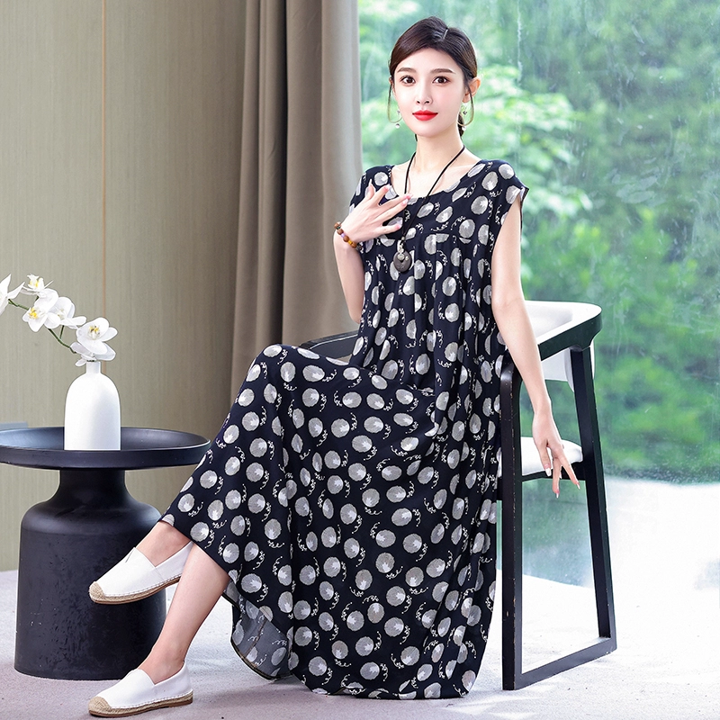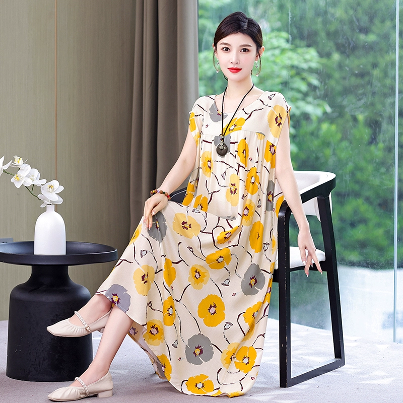 فستان نسائي عالي الجودة من القطن والحرير مقاس كبير
