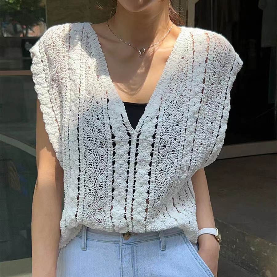 | nameOriginal | Women's hollow-out crocheted V-neck vest sweater summer 2023 new design short outer sun protection sleeveless top |