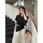 تي شيرت نسائي صيفي فضفاض بأكمام قصيرة وكتف مجوف