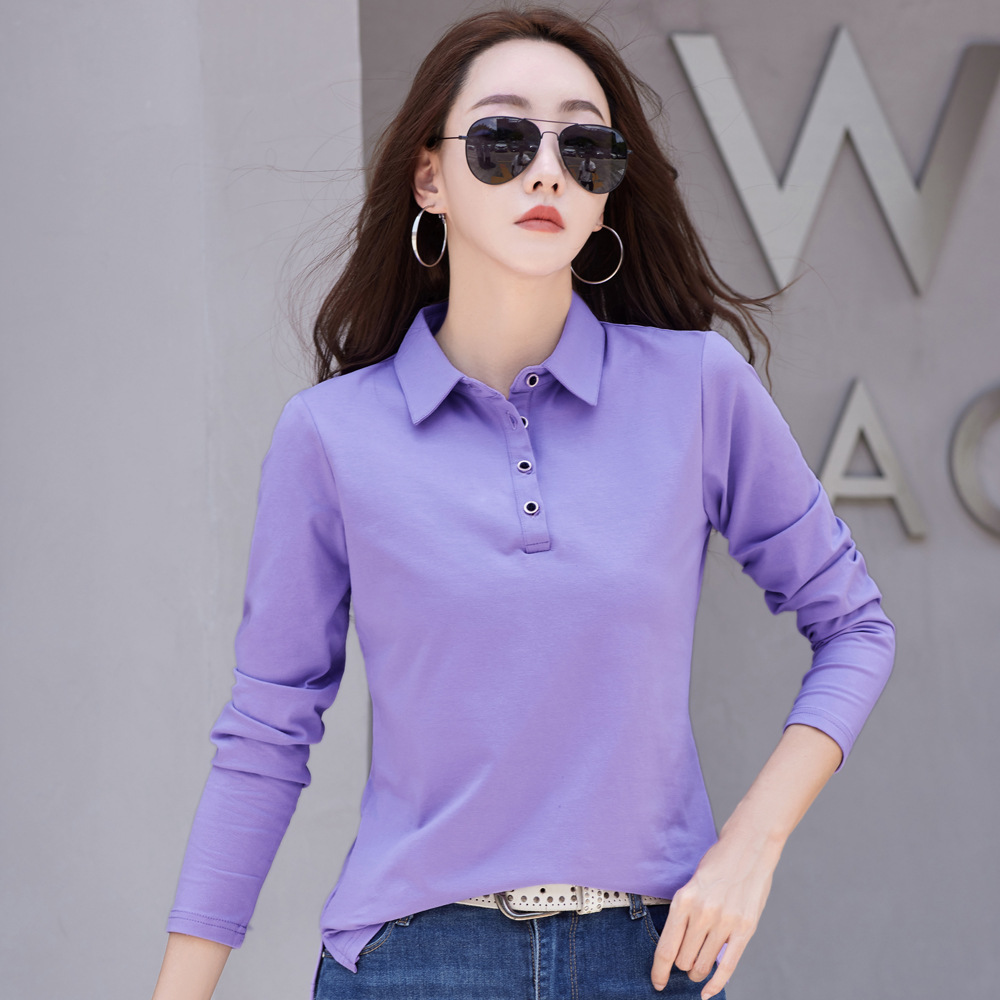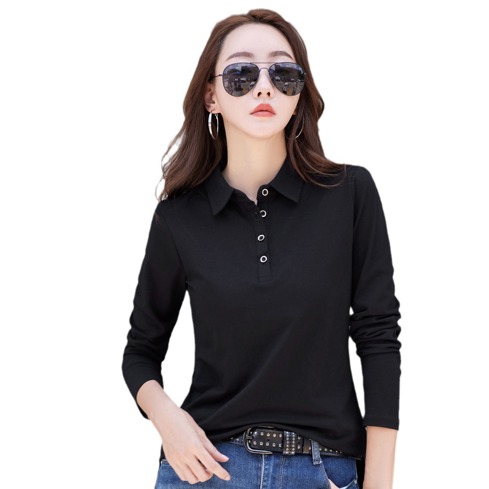 | nameOriginal | Women's Korean-style cotton simple button slimming polo shirt, lapel long-sleeved T-shirt |