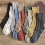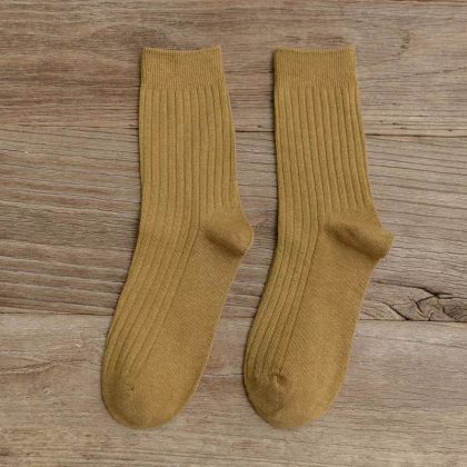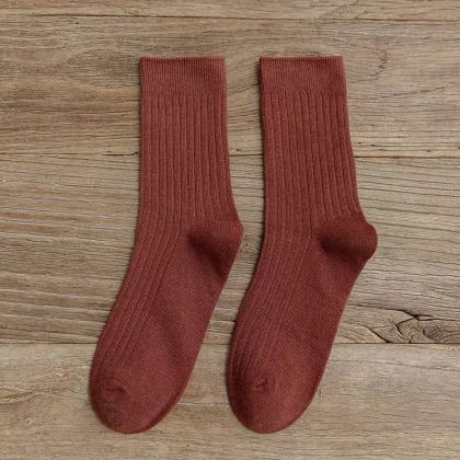 جوارب نسائية منتصف الساق على الطراز الكوري للخريف والشتاء بلون سادة على الطراز الياباني