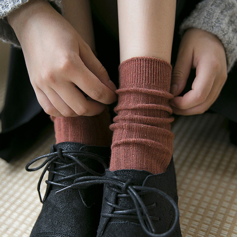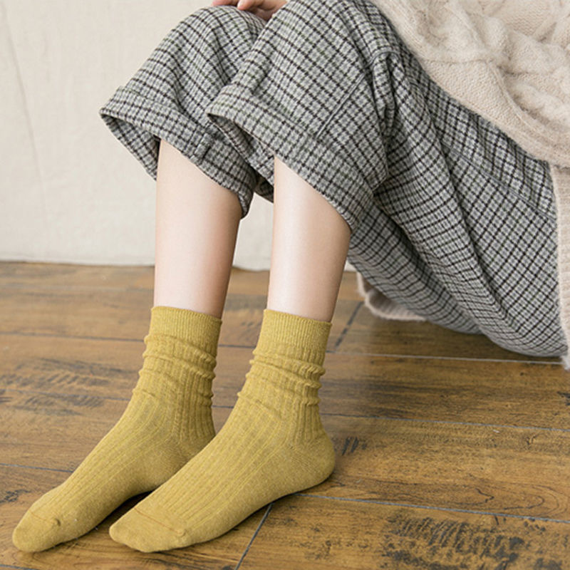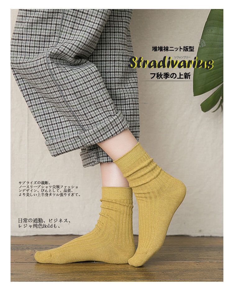 Women's Korean-style mid-calf socks autumn and winter solid color Japanese-style pile socks
