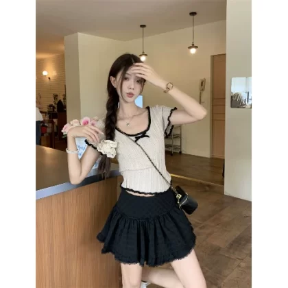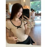 | nameOriginal | Women's kumikumi apricot black edge lace bow |