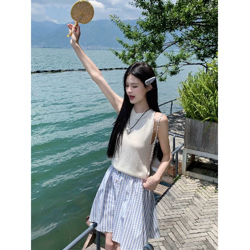 | nameOriginal | Women's kumikumi striped A-line skirt knitted vest |