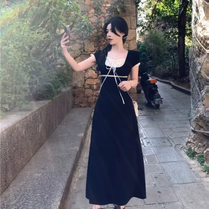 الدانتيل النسائي الذي يربط فستان صيف الدهون النحيف