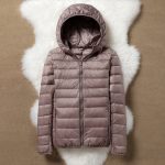 سترة نسائية خفيفة الوزن موضة جديدة 2021 سترة خفيفة قصيرة بغطاء للرأس وياقة واقفة بيضاء اللون للأسفل سترة خفيفة قصيرة عبر الحدود
