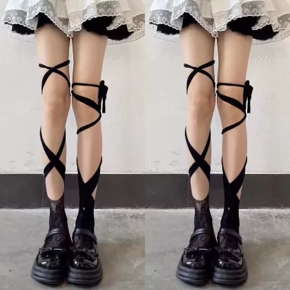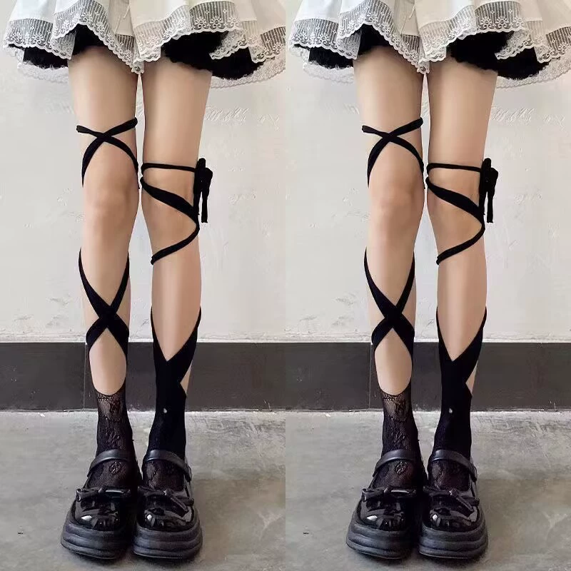 | nameOriginal | Women's lolita spring and summer over-the-knee cross strap socks |